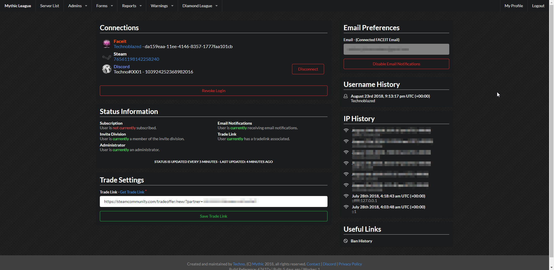 To make an easier method of authenticating with our services, I created an OAUTH flow that would force the user to login through their FACEIT and Discord accounts to make the process as streamlined as possible whilst following relevant legal standards including GDPR.